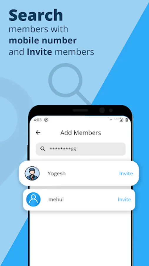 - You can search and invite your friends or family members by name or mobile number.