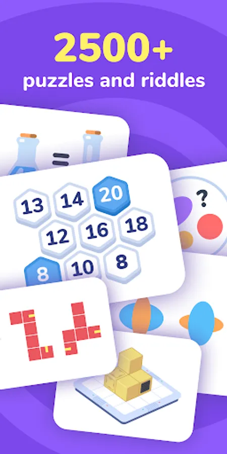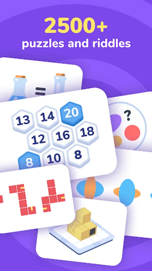 More than 2,500 entertaining logic and math puzzles, quirky riddles, and brain teasers are waiting for you. Enhance your logic skills and boost intellect with our app!