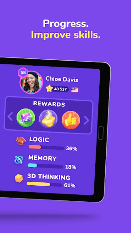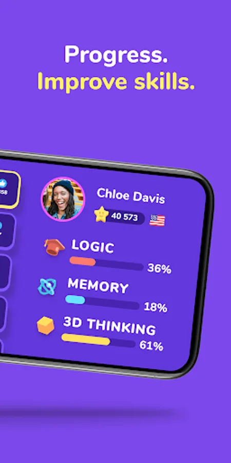 Our collection of logic puzzles and math problems gets bigger every month! We've got 500+ riddles, 400+ 3D puzzles, 300+ rebuses, and hundreds of other fascinating tasks to develop thinking and memory in our app. While playing, you will be developing and improving important skills and abilities: