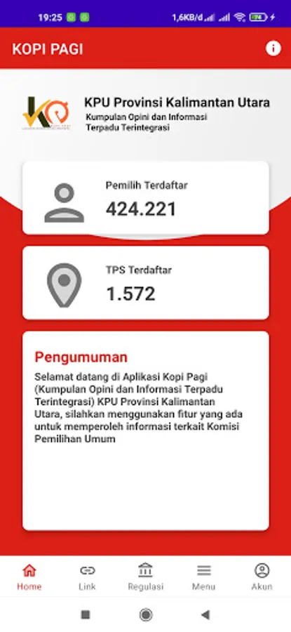 This application also provides contact information and profiles of the North Kalimantan Provincial KPU, so that the public can get information about the North Kalimantan Provincial KPU.