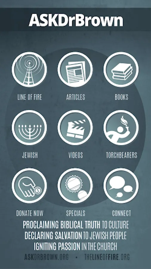 Get the latest, articles, videos ministry updates and much more! Listen live to Dr. Brown’s daily radio broadcast the ‘Line of Fire’. Have a question for Dr. Brown? Call into the show directly from the AskDrBrown App! Want to stay connected to Dr. Brown on social media? The AskDrBrown App allows you to all of this and more, and it is completely FREE!