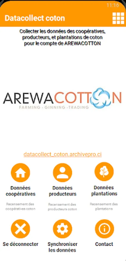 This application is developed specifically for ARREWACOTTON as part of its project to collect data from producers, cooperatives and cotton plantations. It is intended for investigators in the field. These investigators will need to download the application and follow the instructions received during their training.