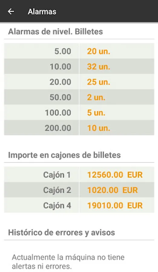 Get the latest information exchange and collection levels for each device. Active and receive alerts in real time by lack of change, raising alerts or amount, enables or restricts access or managers responsible for each of the devices or just take a look at money in your machines. You can not escape any details in control of your cash.