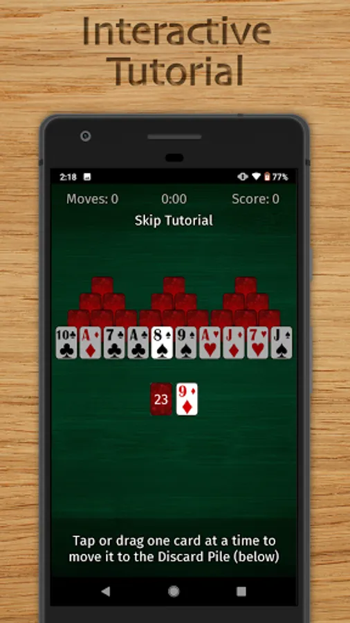 • Interactive tutorial teaches you how to play TriPeaks Solitaire