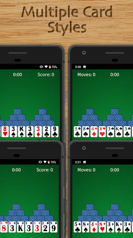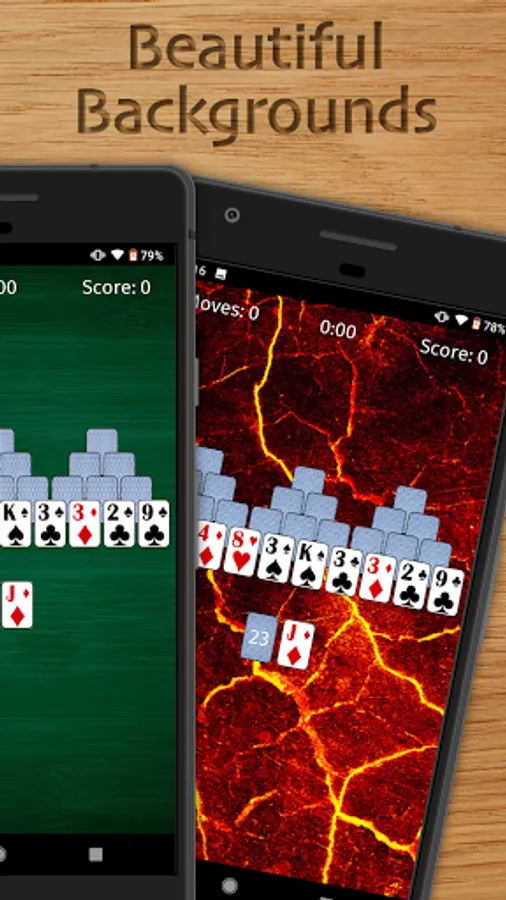 This is a classic TriPeaks Solitaire card game featuring big cards that are easy on your eyes! Relax and play a TriPeaks Solitaire game with 1 finger using drag-and-drop or single tap gameplay. You have unlimited hints and undo's if you get stuck. All for FREE!