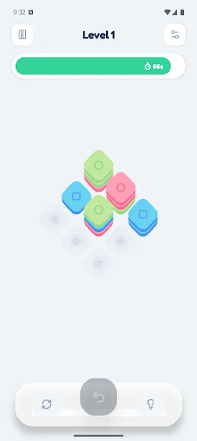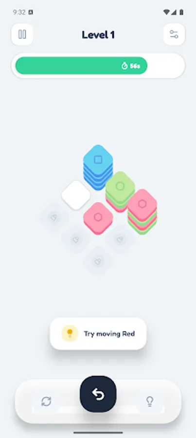 Helpful Tools: Stuck on a tough layer? Use a Hint to get guidance, or use the Undo button to correct mistakes and try new strategies without penalty.