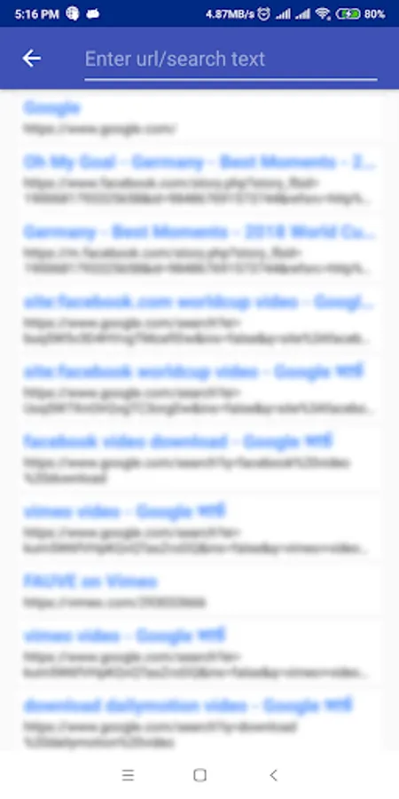 * Go to a site using the built-in browser. Some video links will be available through grabber with appropriate quality settings. If you play the desired video, the grabber will appear. It has the ability to find SD and HD video links from some sites.