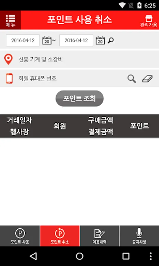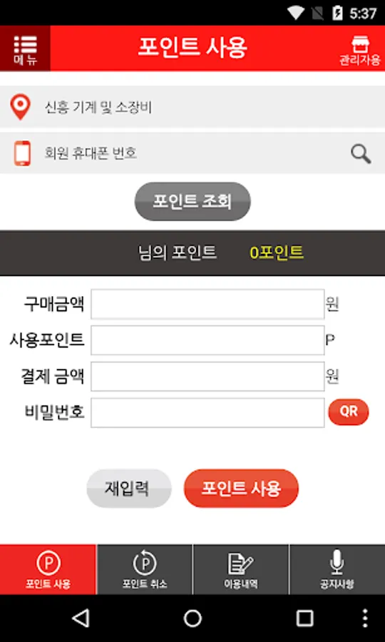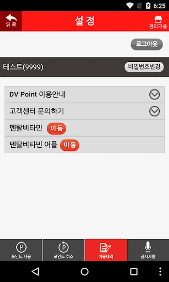 DV POINT mobile apps using Point manager from the point clear, it is possible to check the use history, announcements, etc.