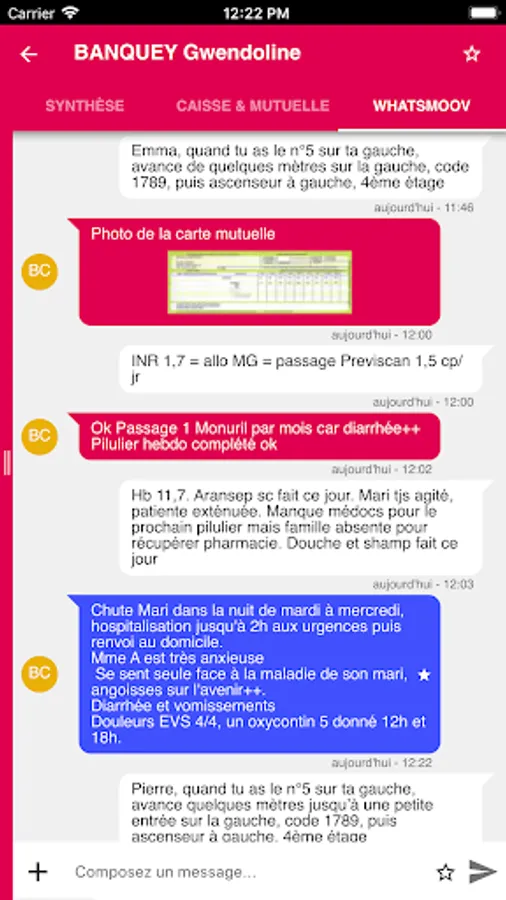 - Benefit from instant messaging thanks to Whatsmoov to facilitate your transmissions and note important information to know in the patient's file;