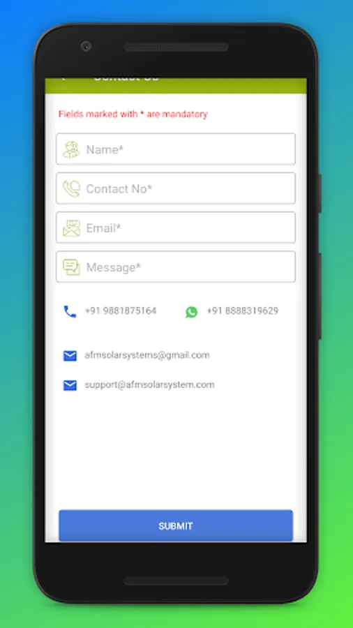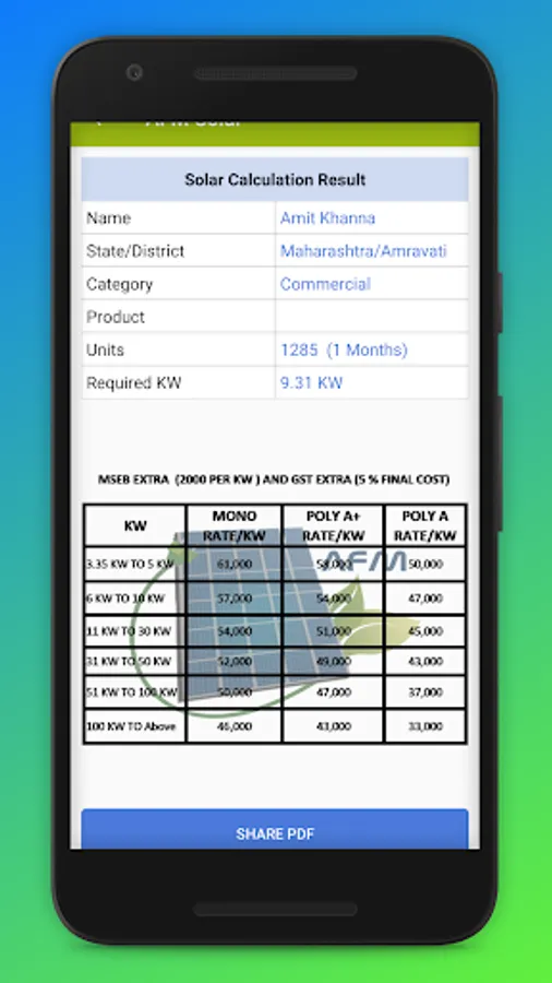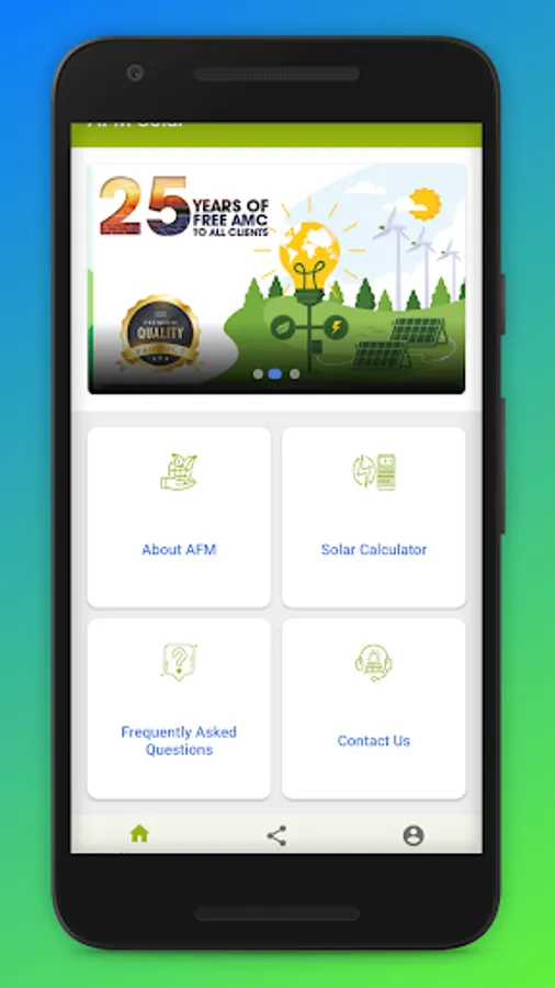 AFM SolarMitra is developed by AFM Solar Systems Private Limited for the promotion of solar systems and assistance of installations of solar systems. The main functionalities of the App includes basic things to be known about all types of solar systems OnGrid Solars, OffGrid Solars or Open Space Solar, Guidelines for installation of Solar systems for commercial , resedential or hybrid Solar Systems, A calculator for calculating the cost of Solar Systems. FAQs on Solar System etc..