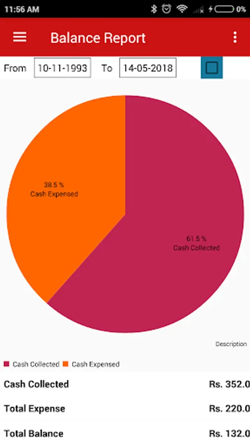 - Balance report -- total cash collected and total expense occurred (can select date range)