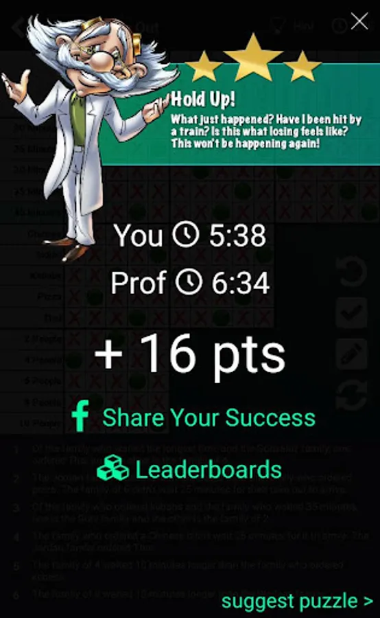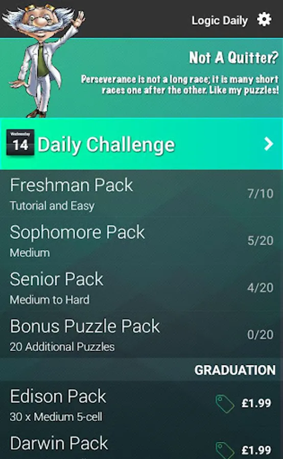 Logic Puzzle fans, meet your nemesis! Created by a team of puzzlers who have been completing these grid-based logic problems for decades, the Logic Professor challenges you to work your way through level after level of his brain-teasers. Can you beat his time for each logic puzzle and win bragging rights, or will you be the recipient of another of his intellectual wisecracks?