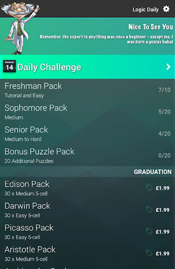 The game starts you off with more than a hundred free logic puzzles, with new puzzles added every day as part of our Daily Challenge feature. Enjoy a new, free brain-teasing logic problem every day direct to your iPhone or iPad or build your collection with one of our puzzle pack add-ons.