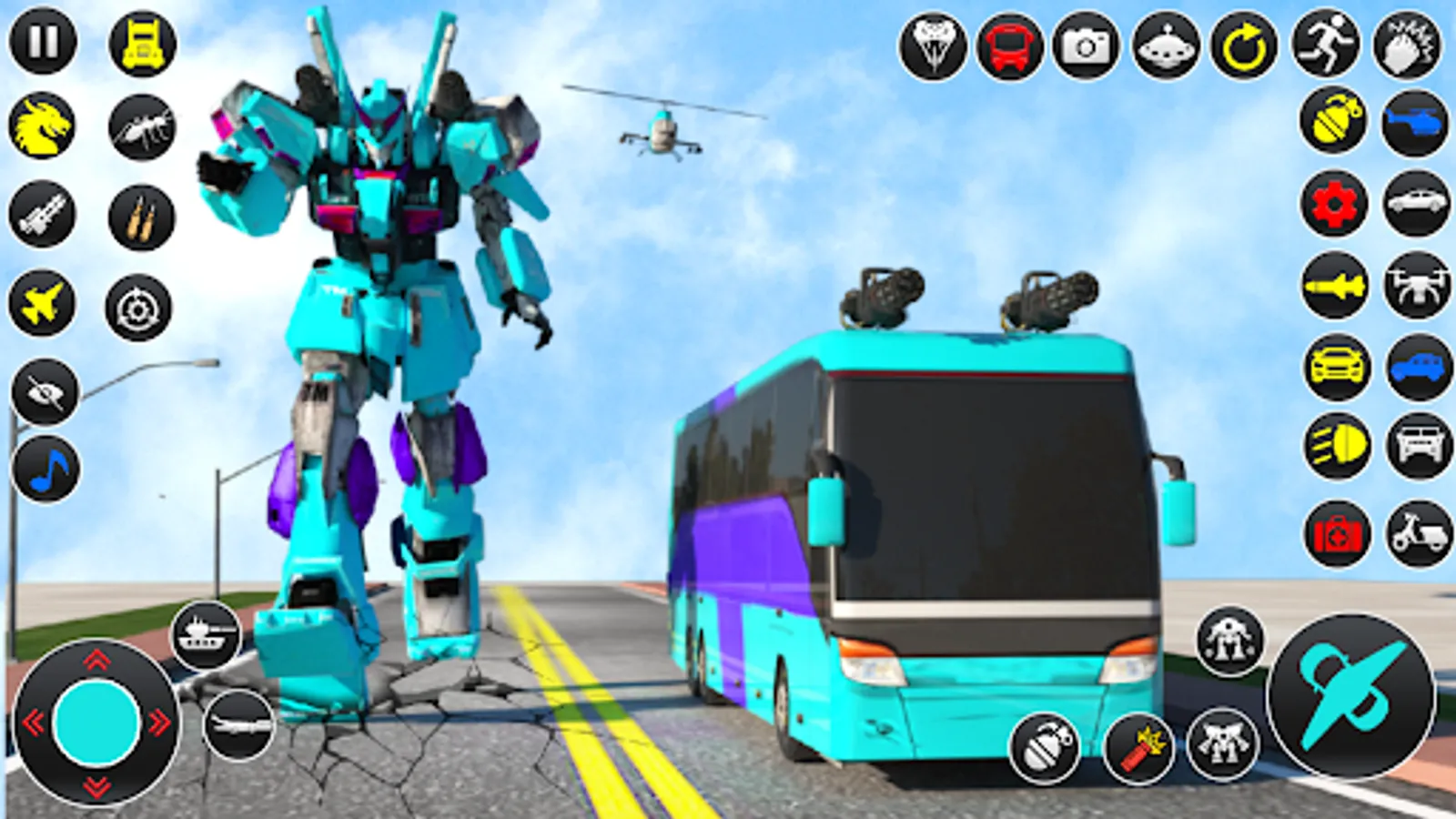 In this Flying Robot Car Bus Game, you have multiple robots options like flying car bus robot game for fighting likely robot car driving, robot bus driving, Flying helicopter, and transformer so you have to win and take complete control over the city again by battling against helicopter air jets games.