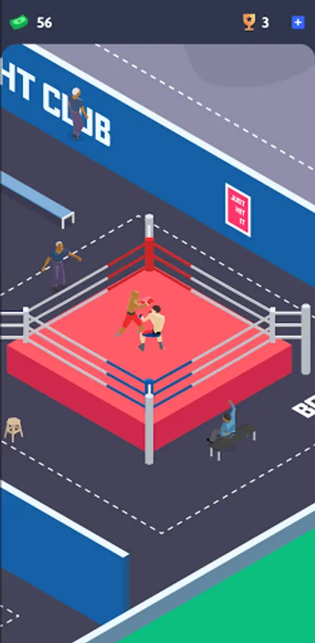 Start as a small fighting gym and become an elite dojo with many champions on its roster. Develop the workout zone so your fighter will be in the best physical shape, hire trainers and sparring partners to develop new skills etc. Enter the tournaments and become an undisputed champion.. Purchase more space to develop your gym and don't forget to save a room for the trophies.