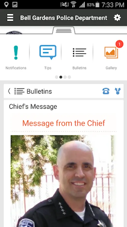 The Bell Gardens Police Department is committed to providing an open and two way communication link to the department. In partnership with LogicTree IT Solutions, Inc., the department now offers a mobile app that provides the perfect way for you to receive notifications of critical information immediately to your mobile device, as well as bulletins about missing persons, stolen vehicles, traffic incidents, etc. The Bell Gardens Police Department App allows you to easily submit tips (anonymously if desired), send comments, photos and place non-emergency calls to the department with the touch of a button.
