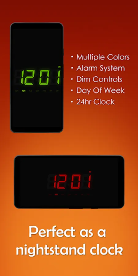- Digital Clock which includes 3 different styles, multiple colors and brightness controls.