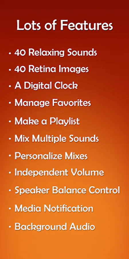 - More Sounds! Choose from a total of 80 high quality, relaxing sounds, including Bacon Frying, Airplane Cabin and many more.