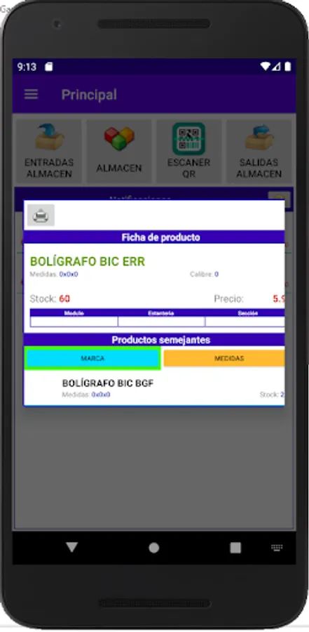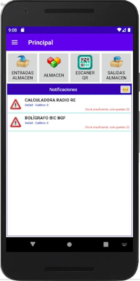 App for warehouse management, warehouse entries and exits. Barcode and QR code readings.