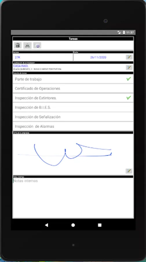 Support app for fire protection company for Extinguishers, B.I.E.S., Signals and Alarms. with its corresponding generation of official documentation in PDF format, and sending it by electronic means.