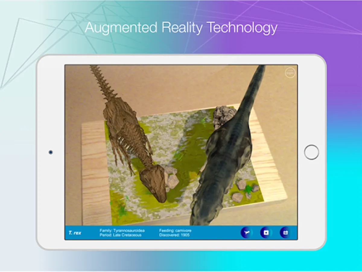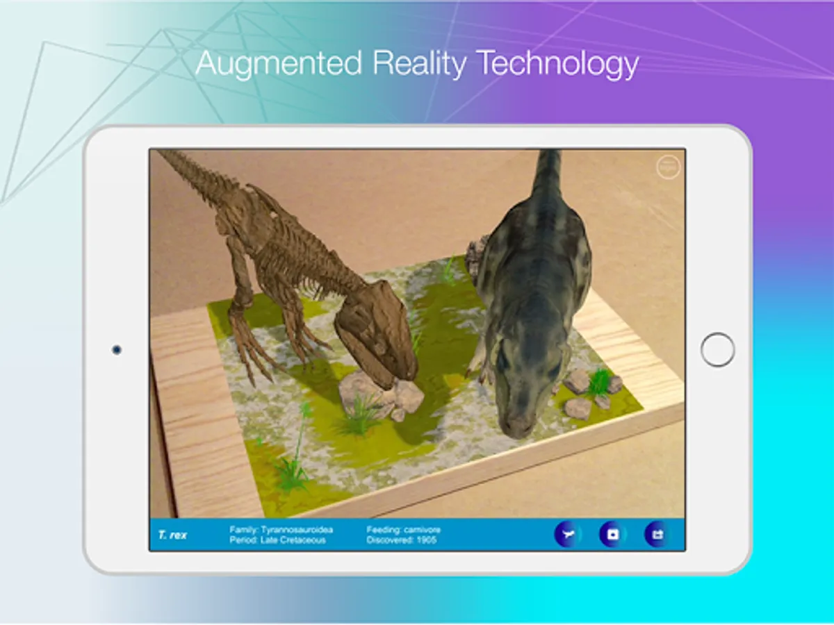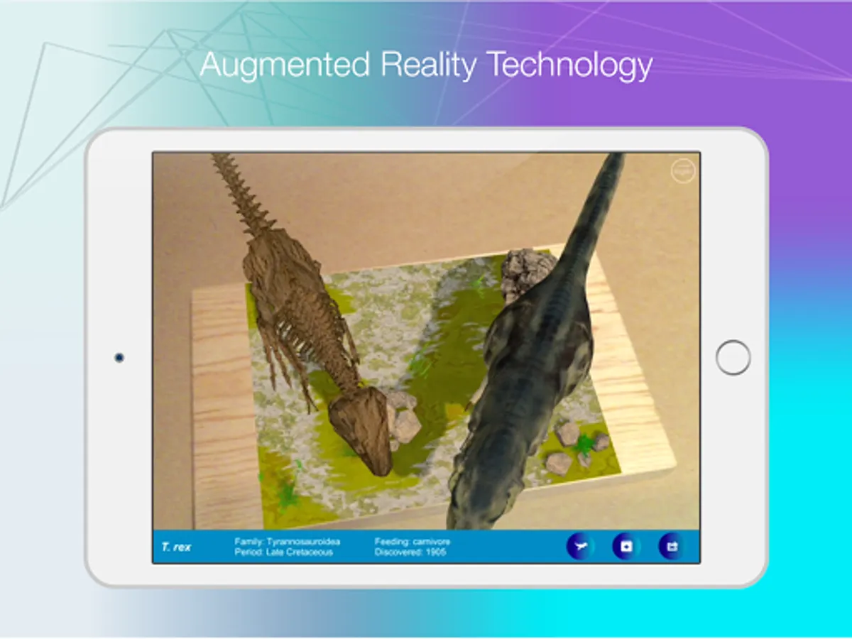 Enjoy a T. rex dinosaur in augmented reality mode, visualize and explore its body and skeleton.