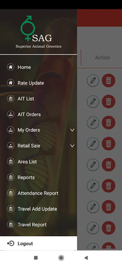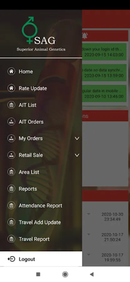 The SAG Sub franchisee mobile application is used for the sales team to keep record of Sales Order, Daily Travelling data, Attendance and registration of AIT contact. It also help to upload the SAG breed calf information. In this application there is no commercial value and its help for sales team for their day to day activity record on mobile.