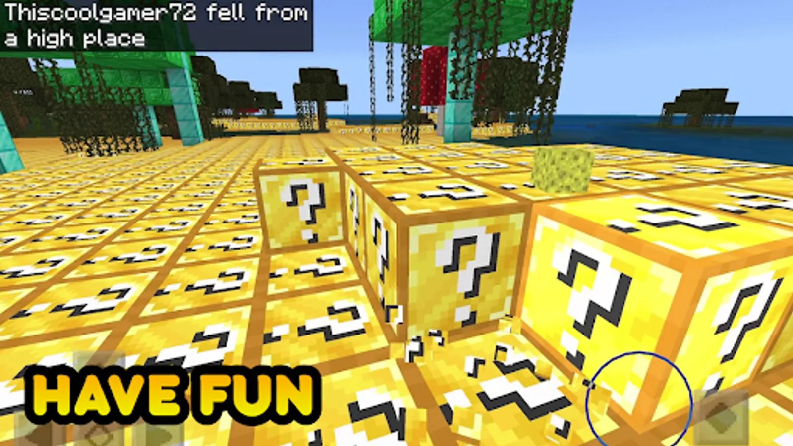 Mod lucky blocks will add a new yellow block with a question mark to the game. You can find lucky blocks just by traveling the world.