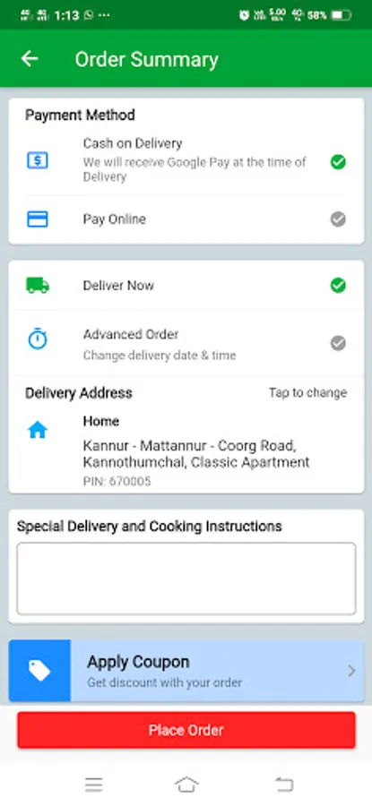 Order food and other grocery items at Kannur. Fast Delivery Service at Kannur.