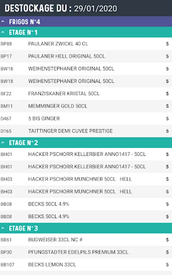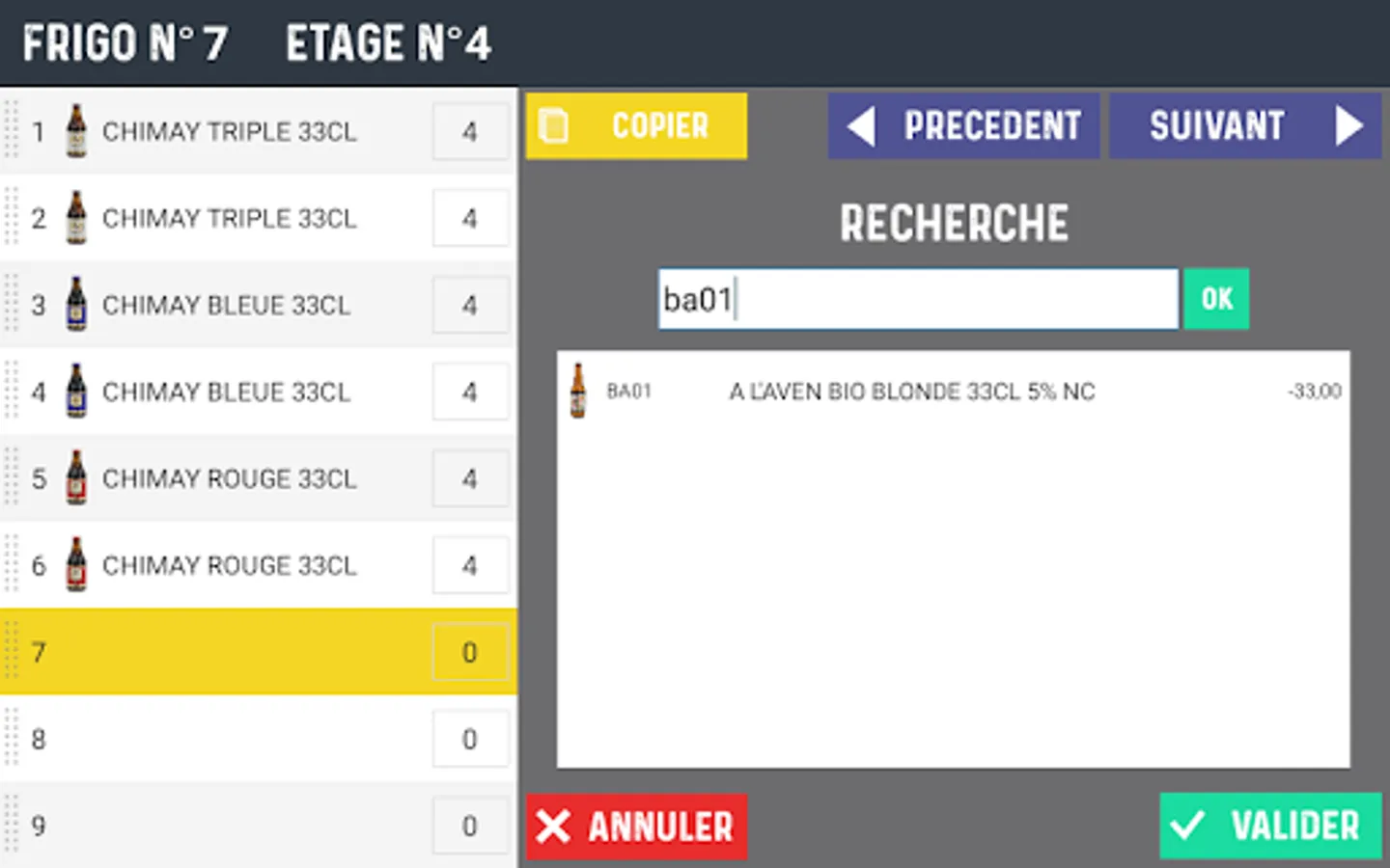 Application dedicated to the VandB franchise (exclusively) to allow stores to carry out the destocking of their fridges after service.