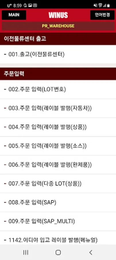 This application is an application that performs PDA tasks required in Eurogisnet WMS (Inventory Management System).