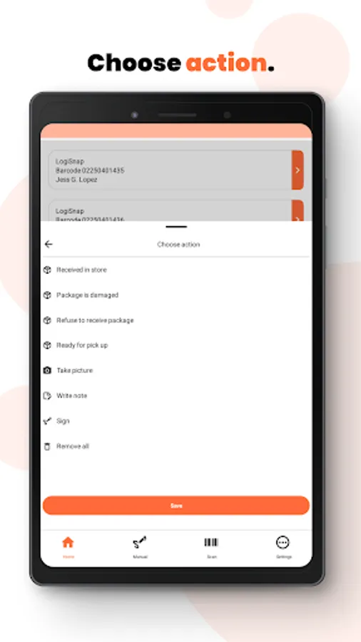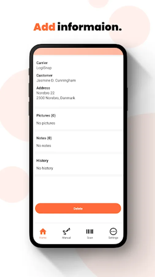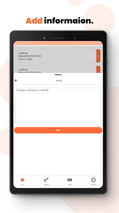 With LogiScan you can add pictures, signature, notes, GPS location etc. As soon as the package is scanned, the user will immediately be able to see who the receiver of the package is, as all data is retrieved from the LogiSnap booking platform, which ensures delivery to the correct receiver.