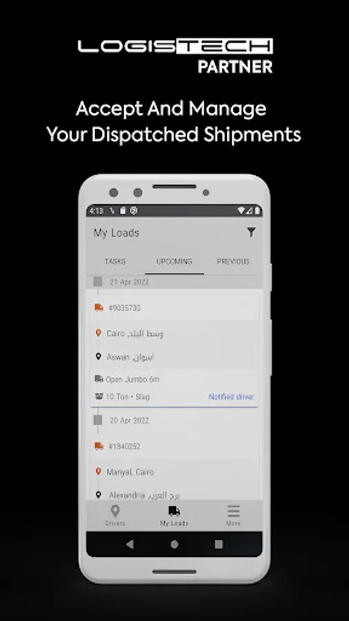 Logistech is a communication tool for freight stakeholders, where transporters can receive dispatched orders, manage driver assignment, and update shippers on their loads.