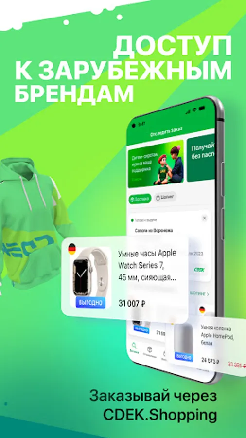 The CDEK application allows you to order the delivery of goods from foreign stores through the CDEK Shopping service. We have selected profitable offers from trusted stores: order from abroad, pay in rubles, and we will deliver the purchases. Fast shipping and courier delivery to your door available