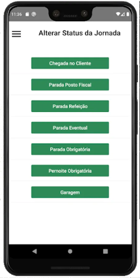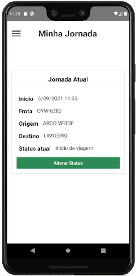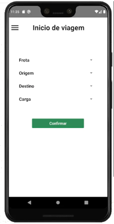 Drivers start their journey by logging into the application, informing the vehicle code (fleet), current location (origin), their next destination and the cargo they are transporting.