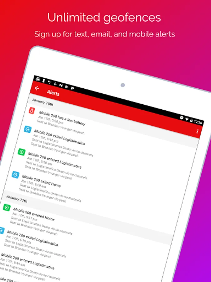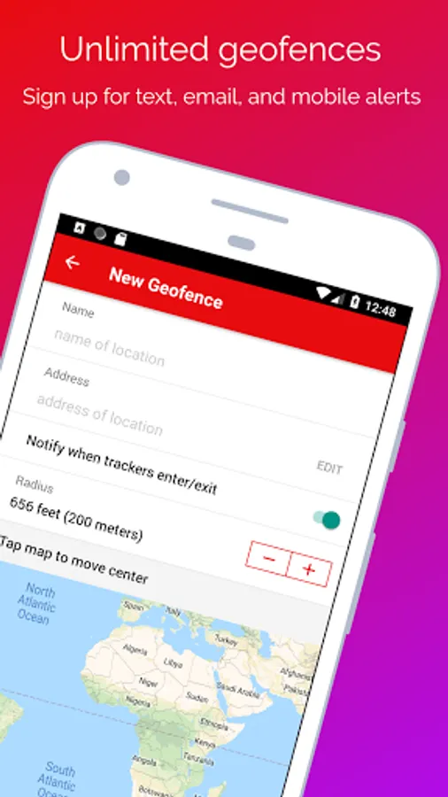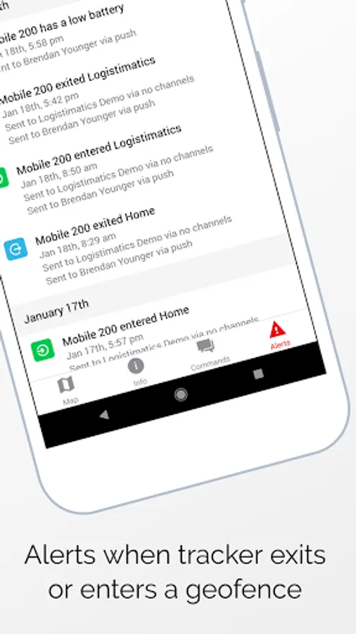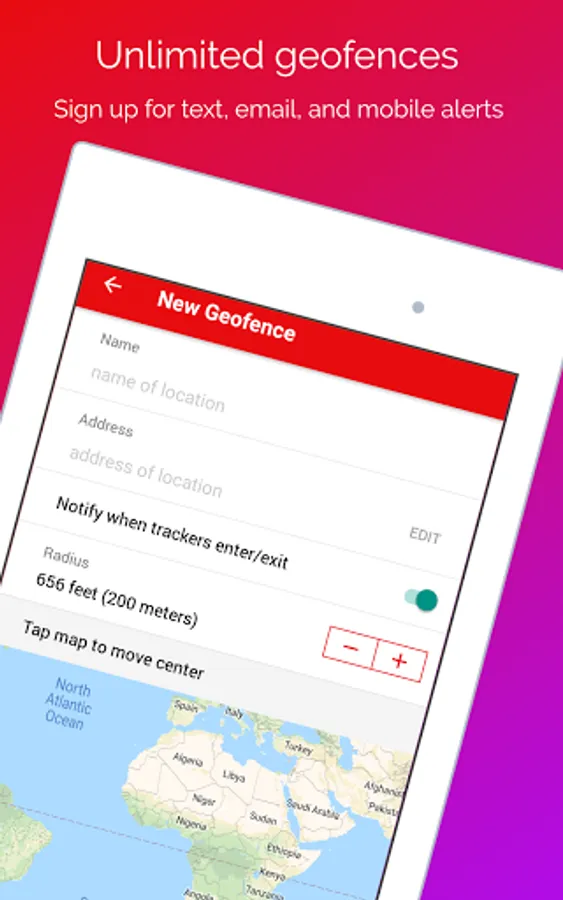 Set and receive notifications when your trackers move in and out of geofences you create.