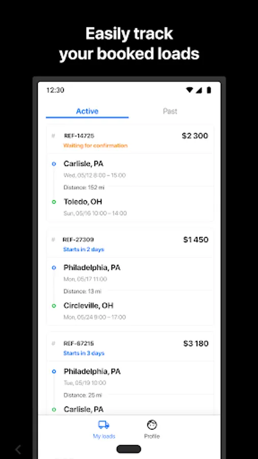 LBOARD was created to make a carrier's life easier. You can find and book loads in one click, receive real-time updates on favorite lanes, submit your bid, and get feedback. Install LBOARD now to try other features including: