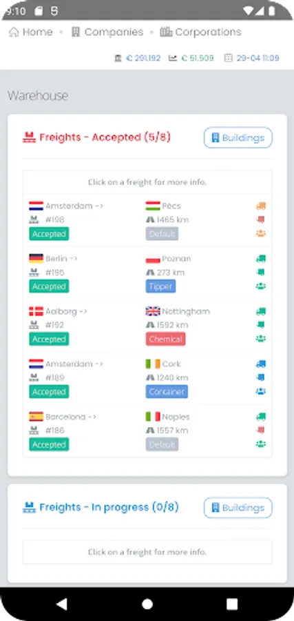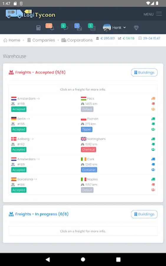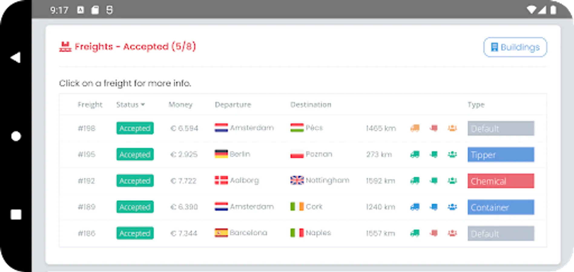 You can start your headquarter in your own country or choose another one, but choose wisely. Your new trucks and trailers will always be delivered at this location.