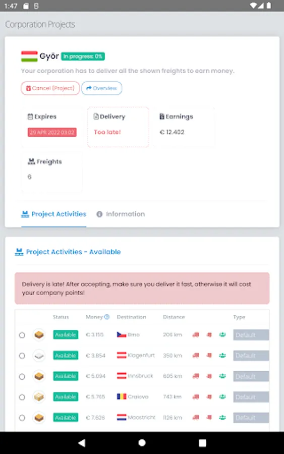 If your company gets big enough, you can join a Corporation or create one yourself. Communicate with other players and use the Corporation freights, projects and fuel stations in your advantage to let your company grow even faster.