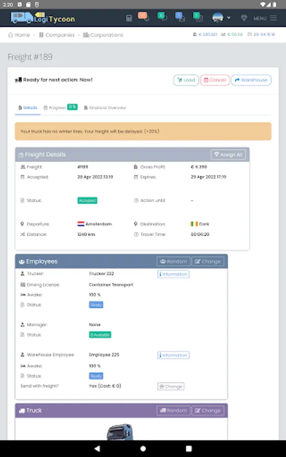 LogiTycoon challenges you to manage your own transport company. Starting with buying trucks, trailers and hiring the needed amount of employees.