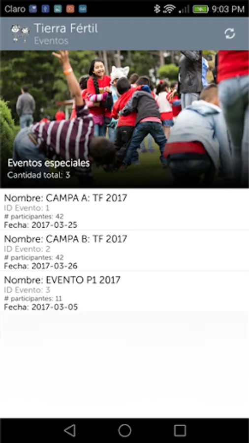 Aplicación para el registro de eventos, estudiantes y voluntarios de TF.