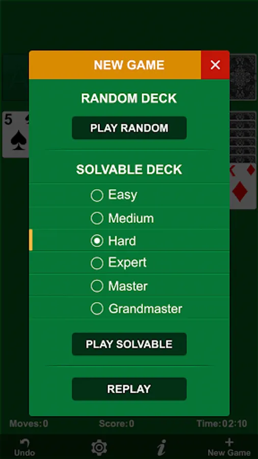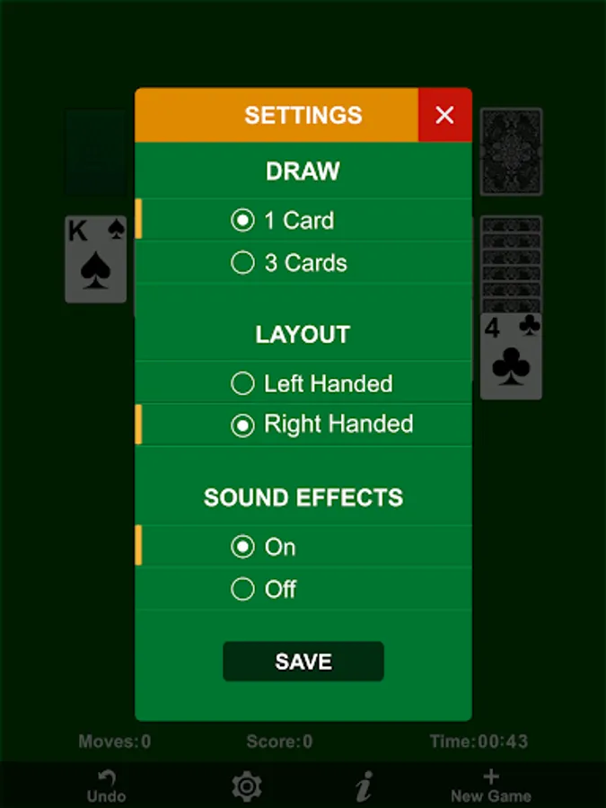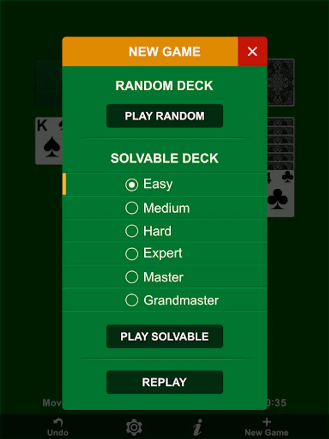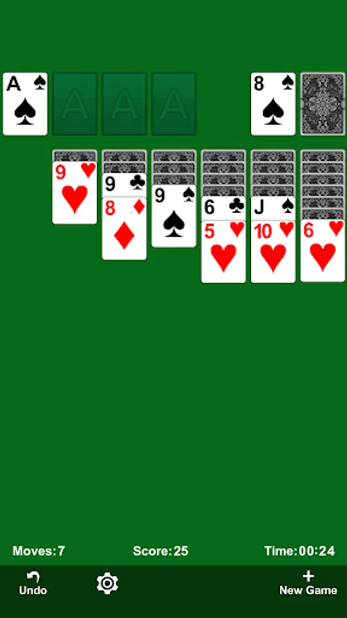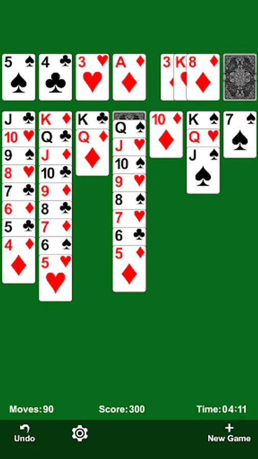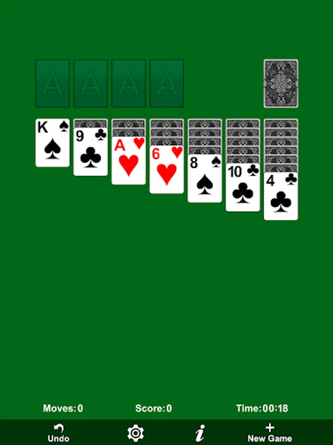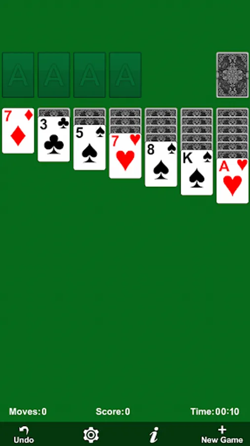 ★ The goal of Klondike is to create a stack of cards from low to high in each of the four foundation piles in the upper-left corner. Each Pile can contain only one suit.