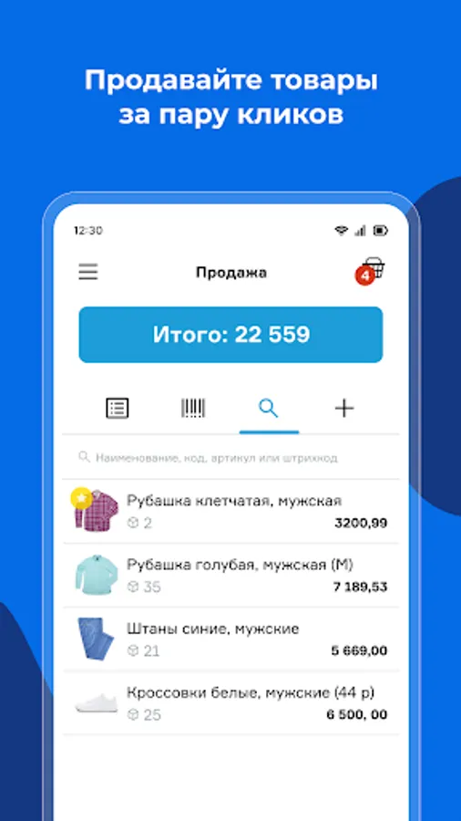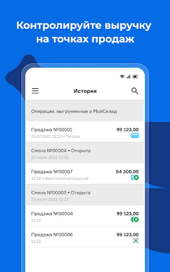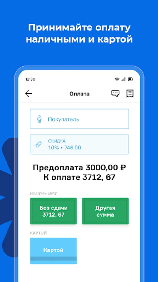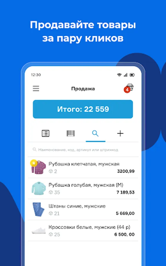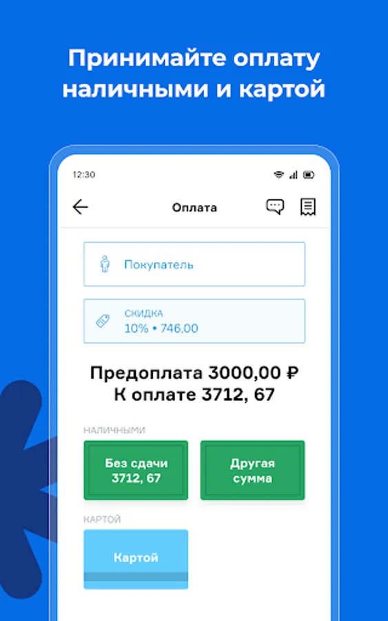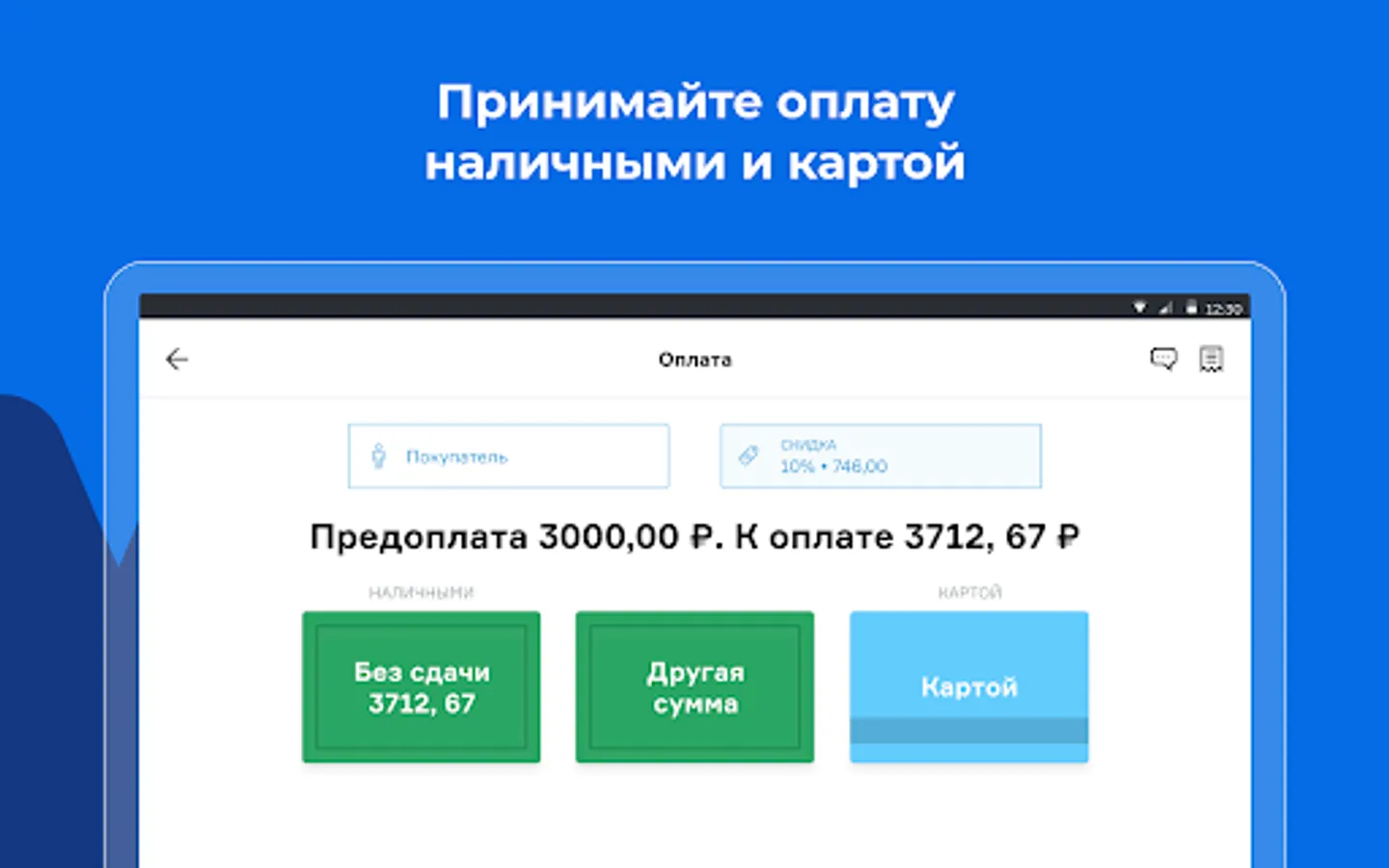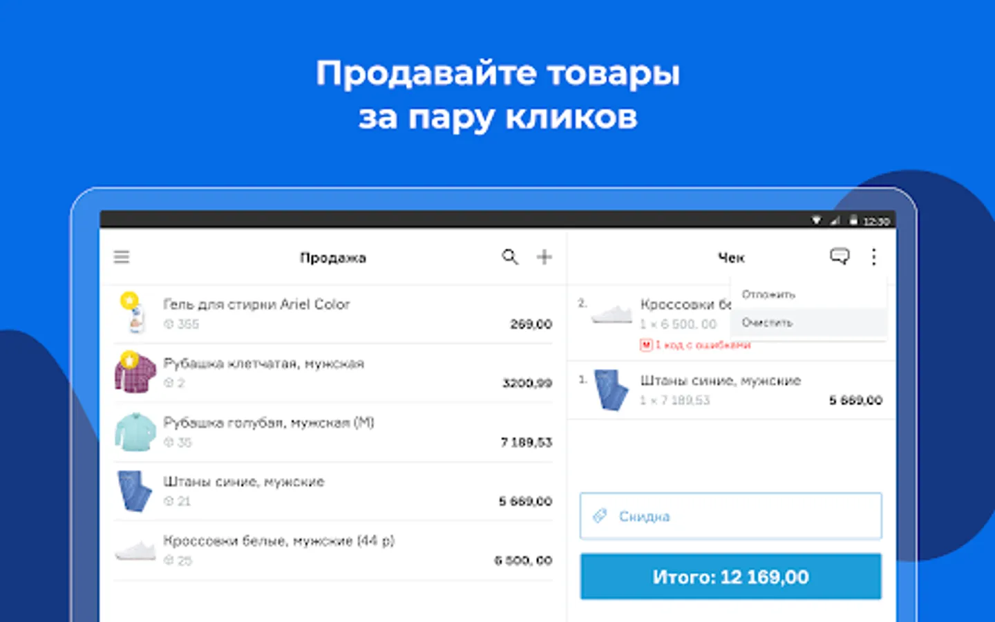 The free Checkout MySklad app turns a smartphone or tablet into a fully functional cash register. Suitable for retail store, PVZ, courier delivery, street trade. Supports the sale of goods with labeling. Complies with 54-FZ - connect the ATOL fiscal registrar and print receipts.