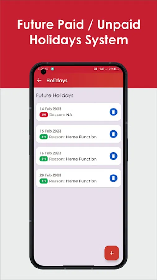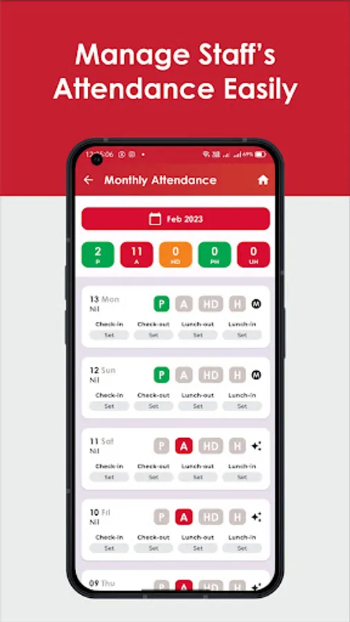 Paid Holiday : Owner can grant paid holidays to employees simply by tapping on paid holiday feature. This will allow employees to enjoy holiday without a deduction in the wages. Owner can mark all the paid holidays of month at once with this easy to use feature.