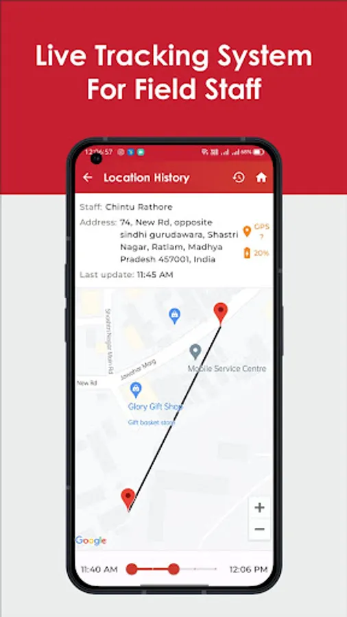 Location Tracking : With the GPS enabled and Location Tracking System, Owner is authorised to track location of employee anytime during business hours. Thus, making Owner-Employee relation more transparent and business, more efficient.