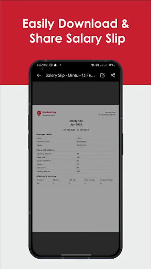 Salary/Wages Calculator : The feature helps you to calculate salary automatically based on your initial inputs. It calculates the final amount to be paid with respect to the employee’s attendance and the salary decided. It also helps you to calculate bonus with the salary as per owner’s wish. No need of maintaining a salary book now. All is in the phone.