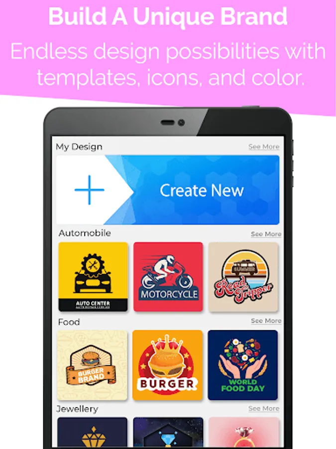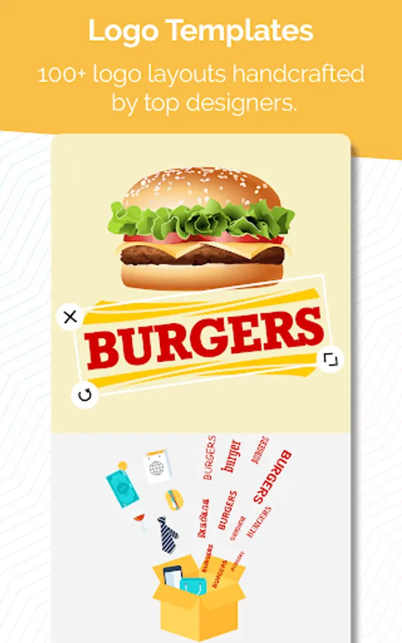 Create professional logos in just a few taps. This logo maker is built for the entrepreneur on the go. No logo design skills are needed.