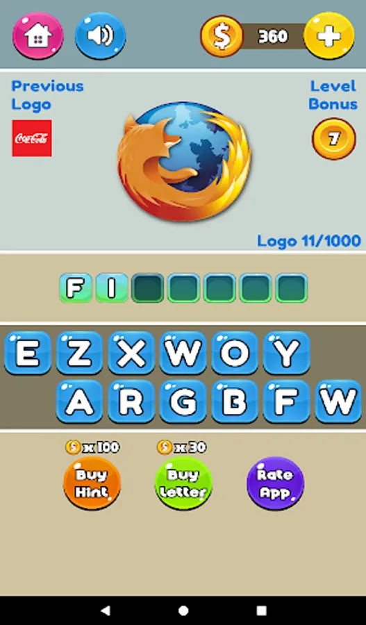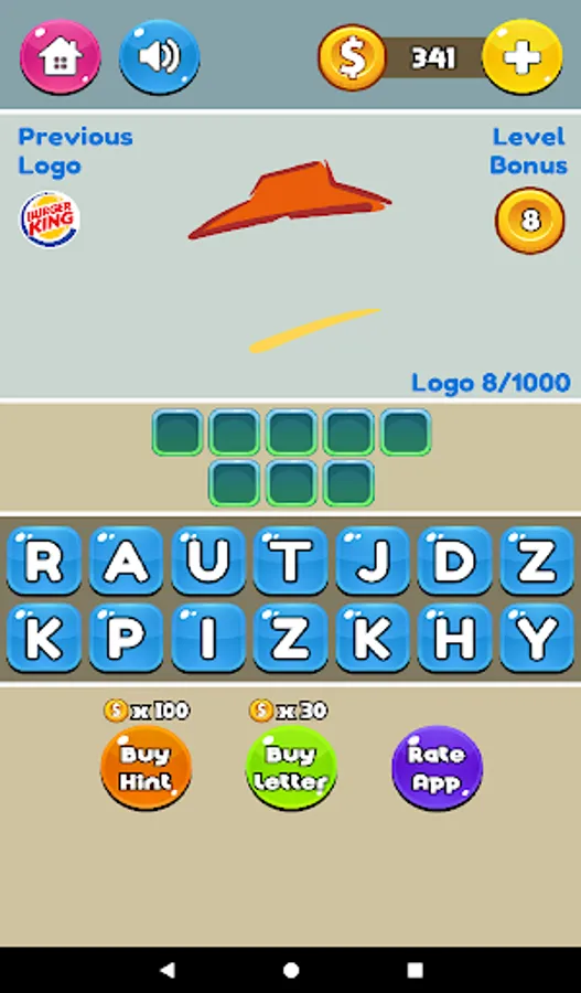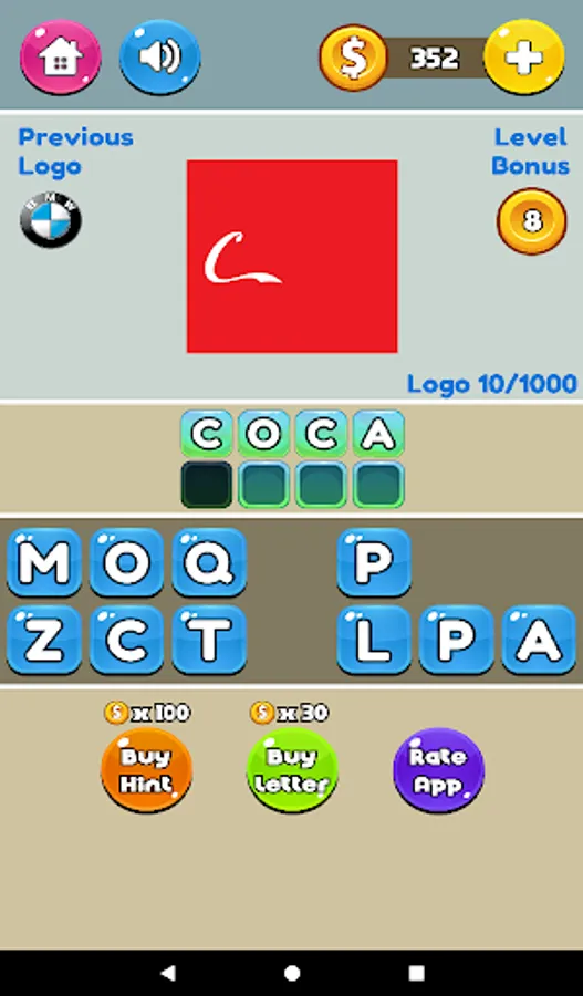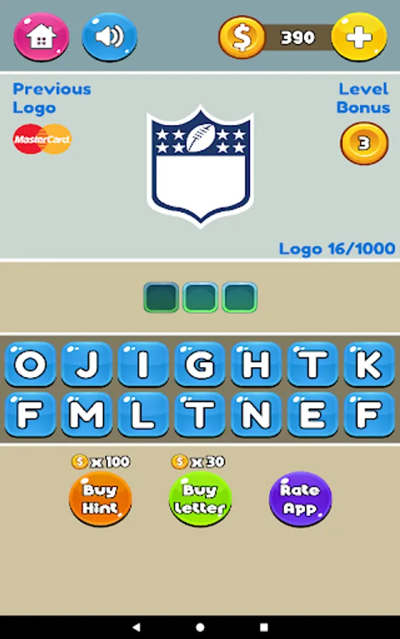 Earn coins for each correct answer and then use your coins to buy letters and hints.