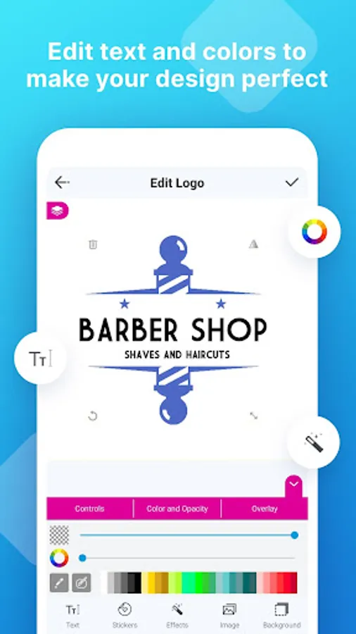 Logo designer makes is easy to create a logo from scratch. Just choose a sticker or icon that fits your business, add your company name, choose the logo colors and textures to make the perfect logo for your business
