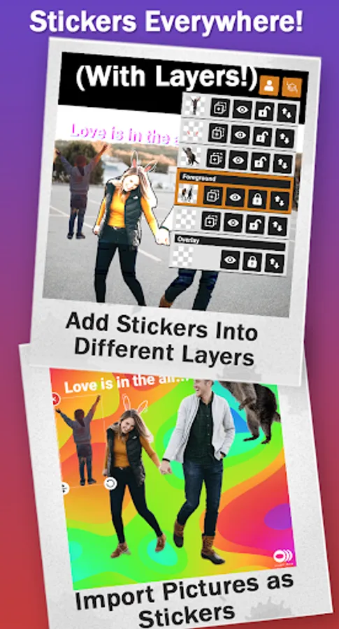 Add multiple stickers and text to turn your photo into video and GIF. You can add multiple backgrounds for your video by creating animation. Use wonderful magical stickers in live photos. Customize your photo with a 3D photo maker effect.