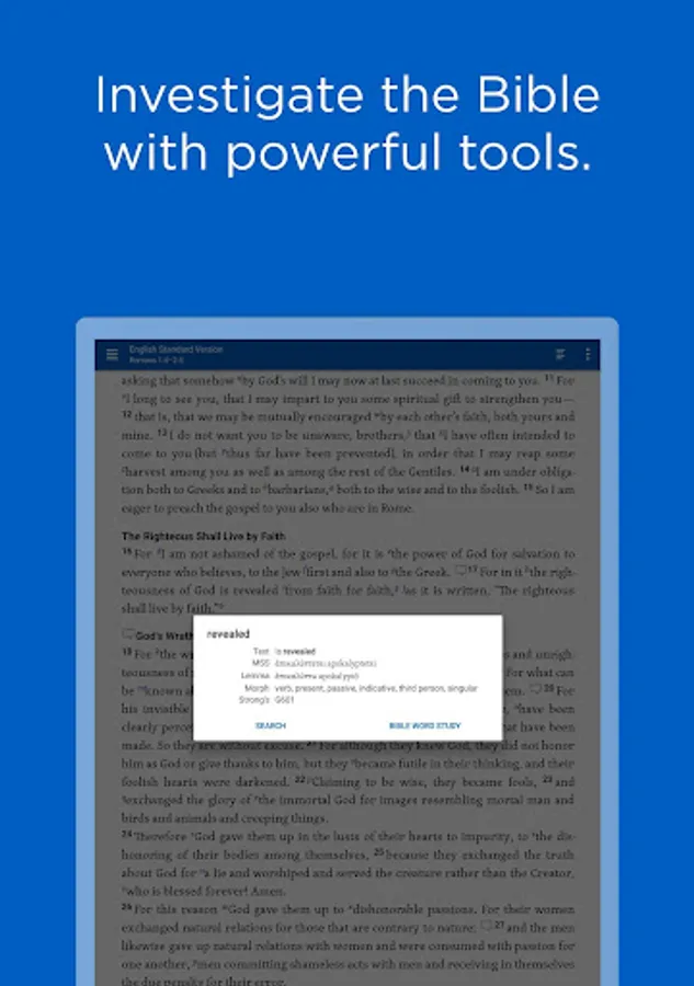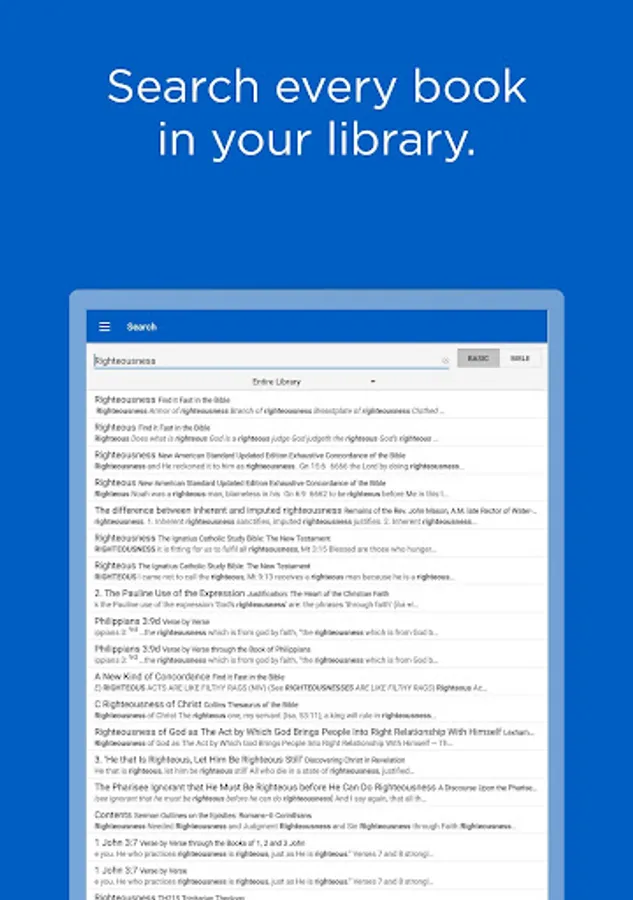 Access powerful search features from any book or resource. Quickly navigate to any Bible verse or search your library to dig deeper.